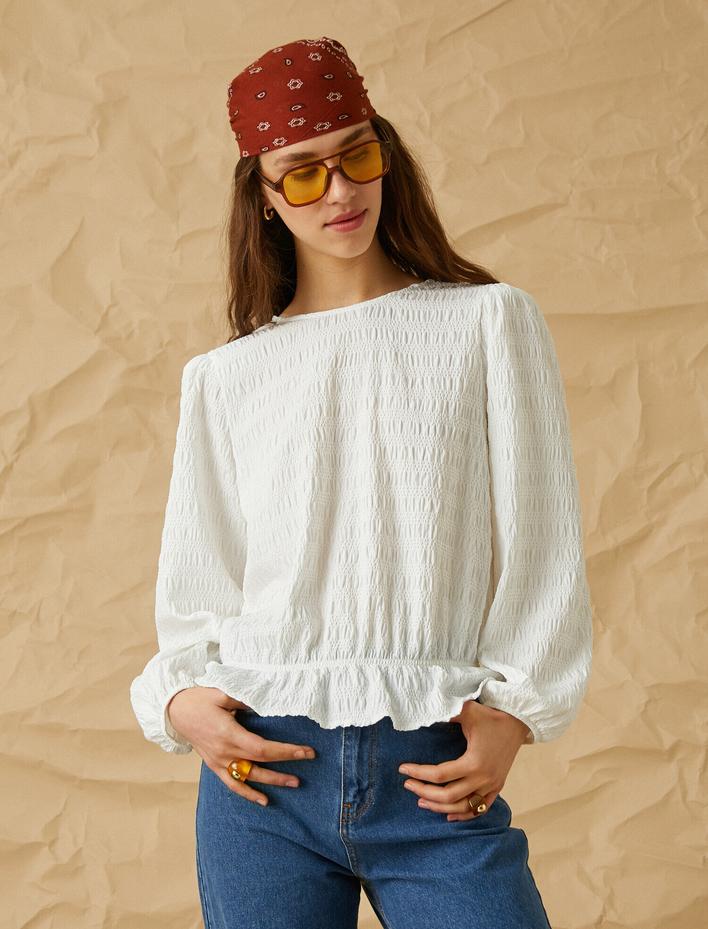 Fırfırlı Uzun Kollu Bluz Sepete Ekle