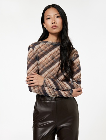 Koton X Sibil Çetinkaya - Slim Fit Uzun Kollu Dik Yaka Ekose Bluz Sepete Ekle