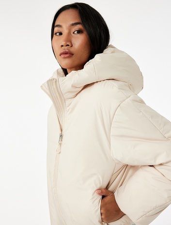 Fermuarlı Uzun Kollu Su İtici Kapüşonlu Crop Şişme Mont Sepete Ekle