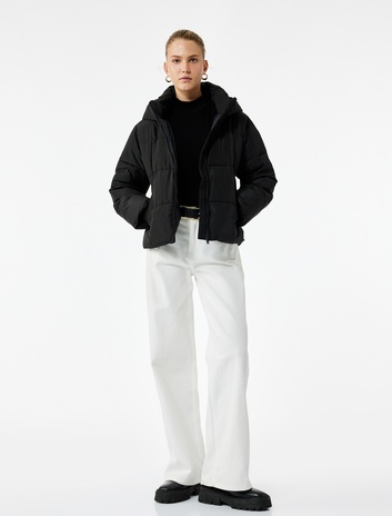 Rahat Kalıp Fermuarlı Kapüşonlu Kapitoneli Dik Yaka Şişme Mont Sepete Ekle
