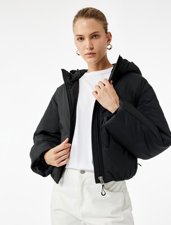 Fermuarlı Uzun Kollu Su İtici Kapüşonlu Crop Şişme Mont Sepete Ekle