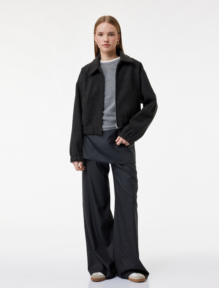Slim Fit Uzun Kollu Gömlek Yaka Fermuarlı Bomber Ceket Sepete Ekle
