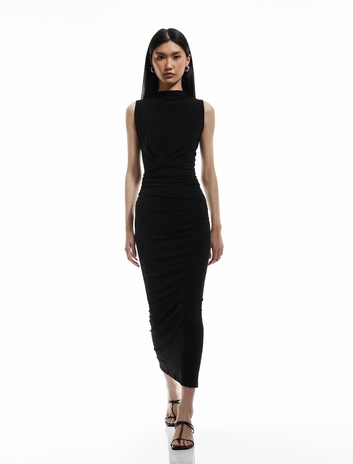 Sandy Kumaş Dik Yaka Kolsuz Uzun Bodycon Kalem Elbise