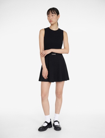 Kemer Detaylı Bisiklet Yaka Kolsuz Mini Kloş Elbise