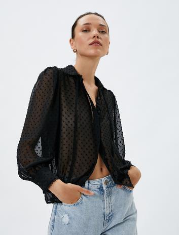 Transparan Şifon Gömlek Dokulu Balon Kollu Bağlama Detaylı Sepete Ekle