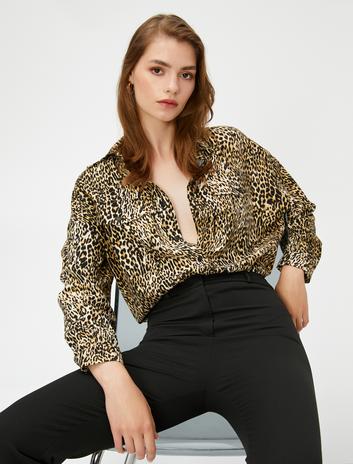 Zebra Desenli Şifon Gömlek Uzun Kollu
