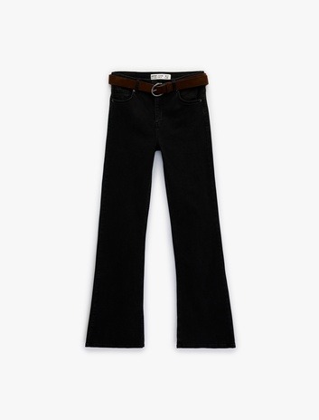 Zincir Kemer Detaylı Normal Bel Yıkamalı İspanyol Paça Jean Pantolon - Flare Jeans Sepete Ekle