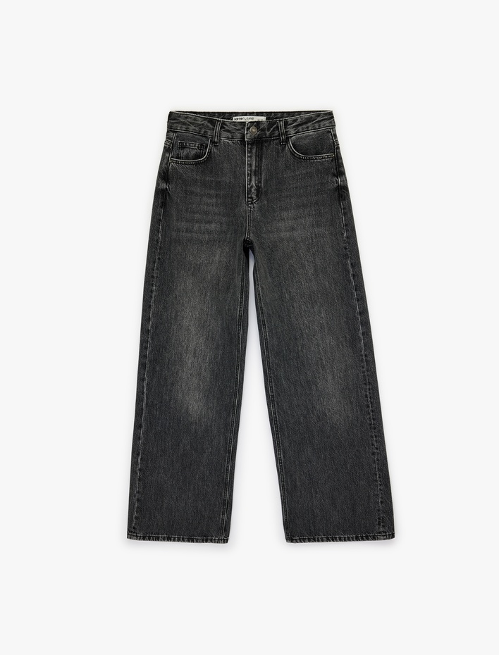 Geniş Paça Düğmeli Pamuklu Denim Pantolon - Wide Leg Jeans Sepete Ekle