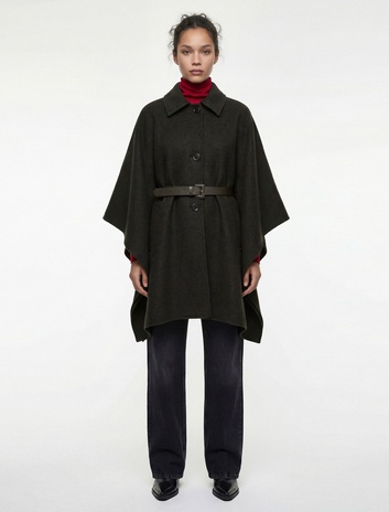 Pelerin Kaban Kemerli Oversize Kaşe
