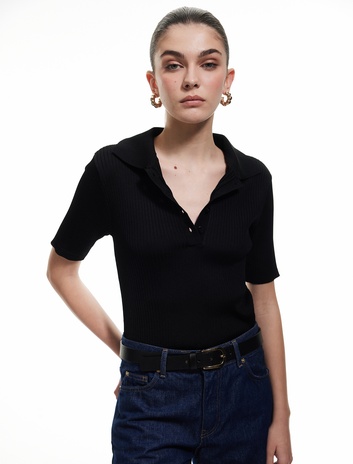 Kısa Kollu Düğmeli Polo Yaka Triko Kazak