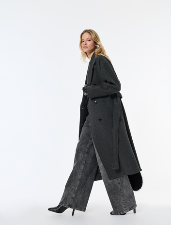 Çoban Dikiş Detaylı Kemerli Cepli Uzun Kollu Kaşe Mont Sepete Ekle
