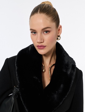 Suni Kürk Yaka Kaban Kaşe Kemerli Uzun Kollu Sepete Ekle
