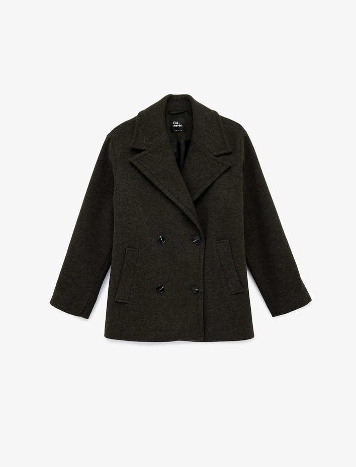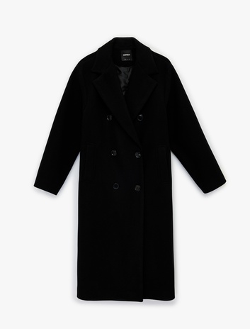 Uzun Kollu Düğmeli Kruvaze Ceket Yaka Kaban Sepete Ekle
