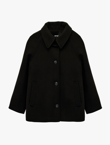 Düğmeli Uzun Reglan Kollu Kaşe Kaban Sepete Ekle