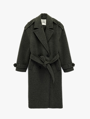 Kruvaze Yaka Uzun Kollu Cepli Kemerli Uzun Kaşe Kaban Sepete Ekle