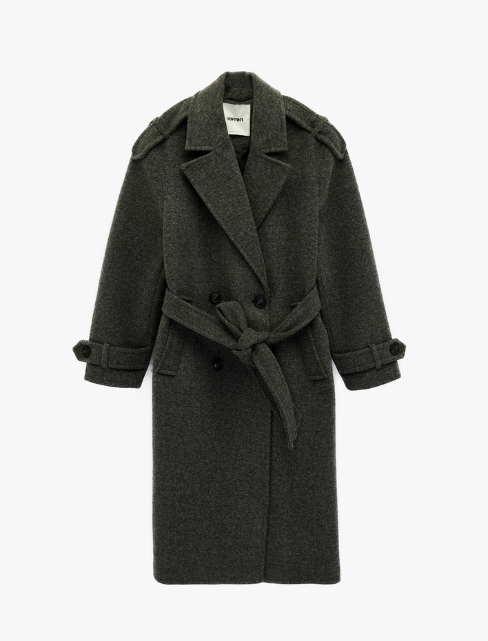 Kemerli Kaşe Kaban Kruvaze Düğmeli Uzun Kollu Cepli Sepete Ekle