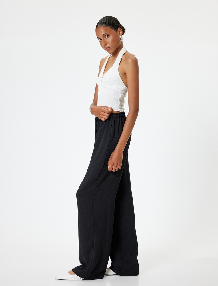 Palazzo Pantolon Bol Paça Beli Lastikli Düğme Detaylı Sepete Ekle