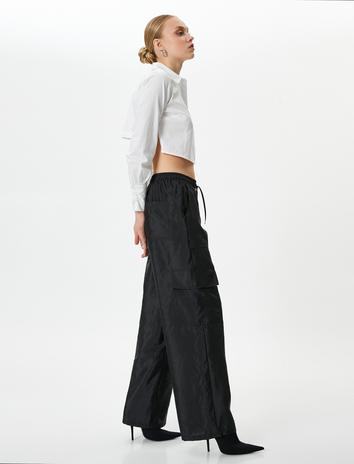 Paraşüt Pantolon Düz Paça Kargo Cepli Beli Bağcıklı
