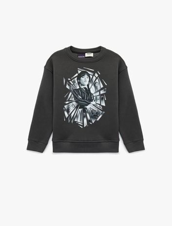 Lisanslı Wednesday Baskılı Uzun Kollu Bisiklet Yaka Şardonlu Oversize Sweatshirt Sepete Ekle