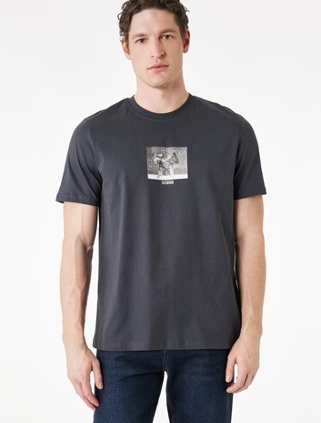 Regular Fit Kısa Kollu Bisiklet Yaka Pamuklu Baskılı Tişört Sepete Ekle