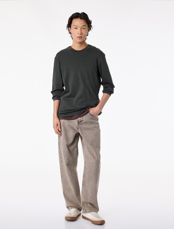 Regular Fit Pamuklu Uzun Kollu Bisiklet Yaka Tişört