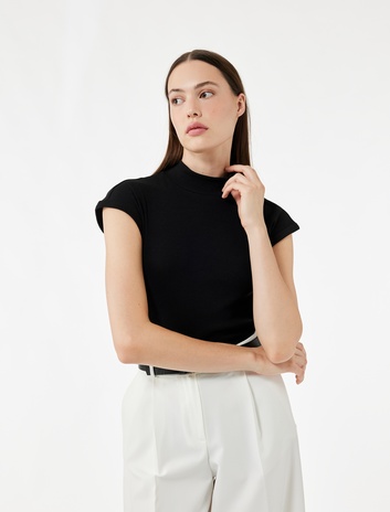 Fiyonklu Tişört Dantel Kısa Kollu Dik Yaka Slim Fit