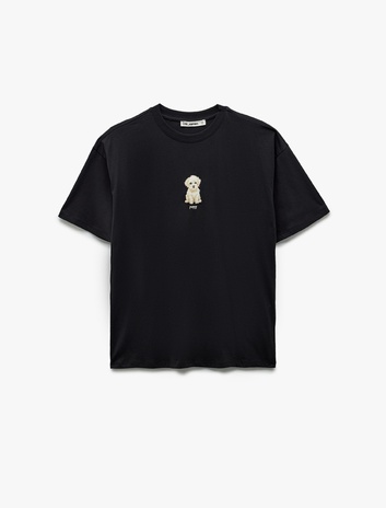 Bisiklet Yaka Kısa Kollu Köpek Nakışlı Pamuklu Oversize Tişört Sepete Ekle
