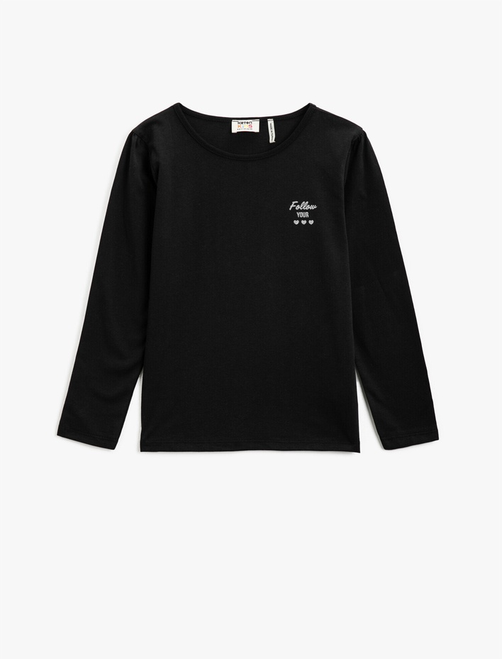 Pamuklu Yazılı Baskılı Uzun Kollu Bisiklet Yaka Tişört Sepete Ekle