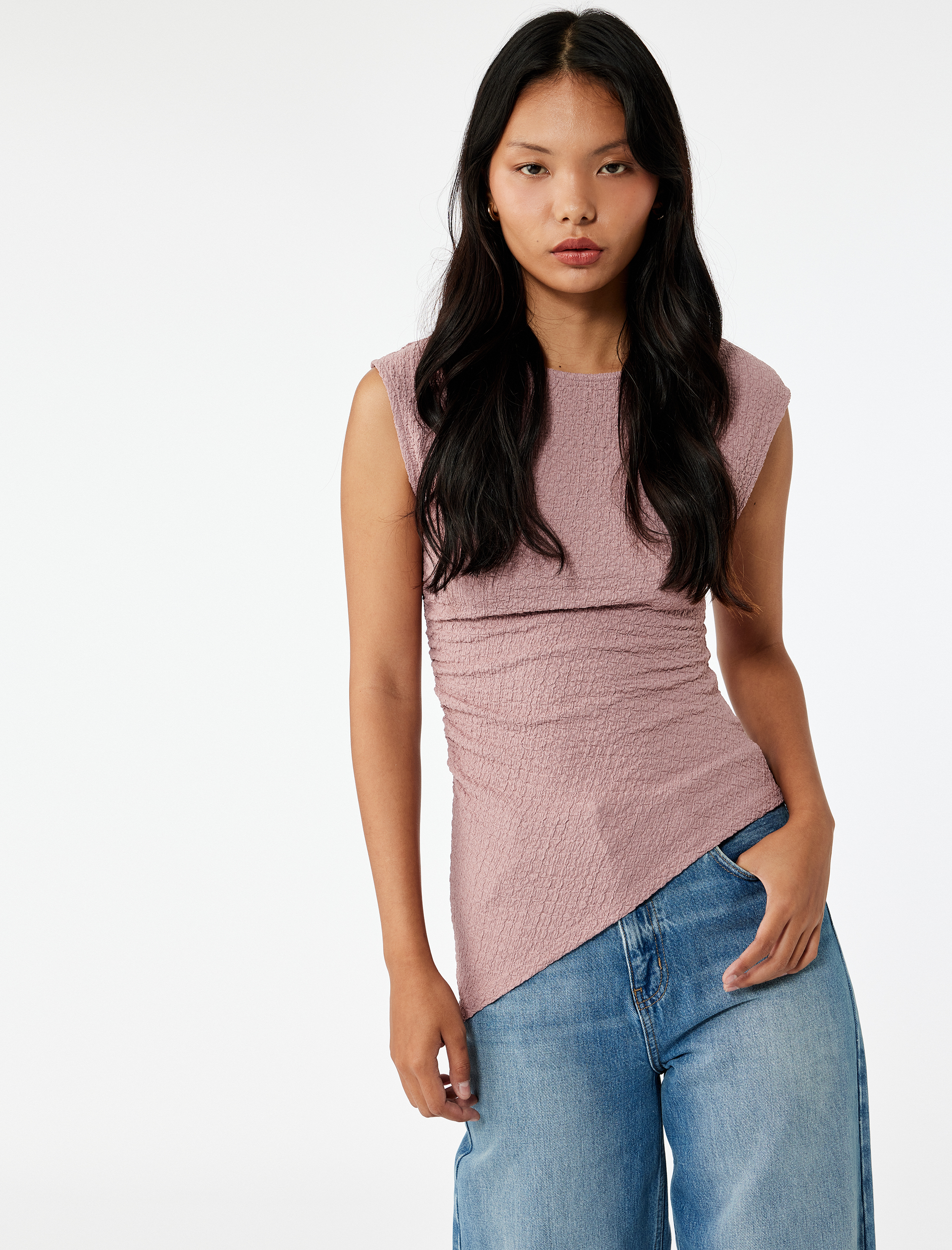 Slim Fit Asimetrik Bisiklet Yaka Bürümcük Kolsuz Tişört