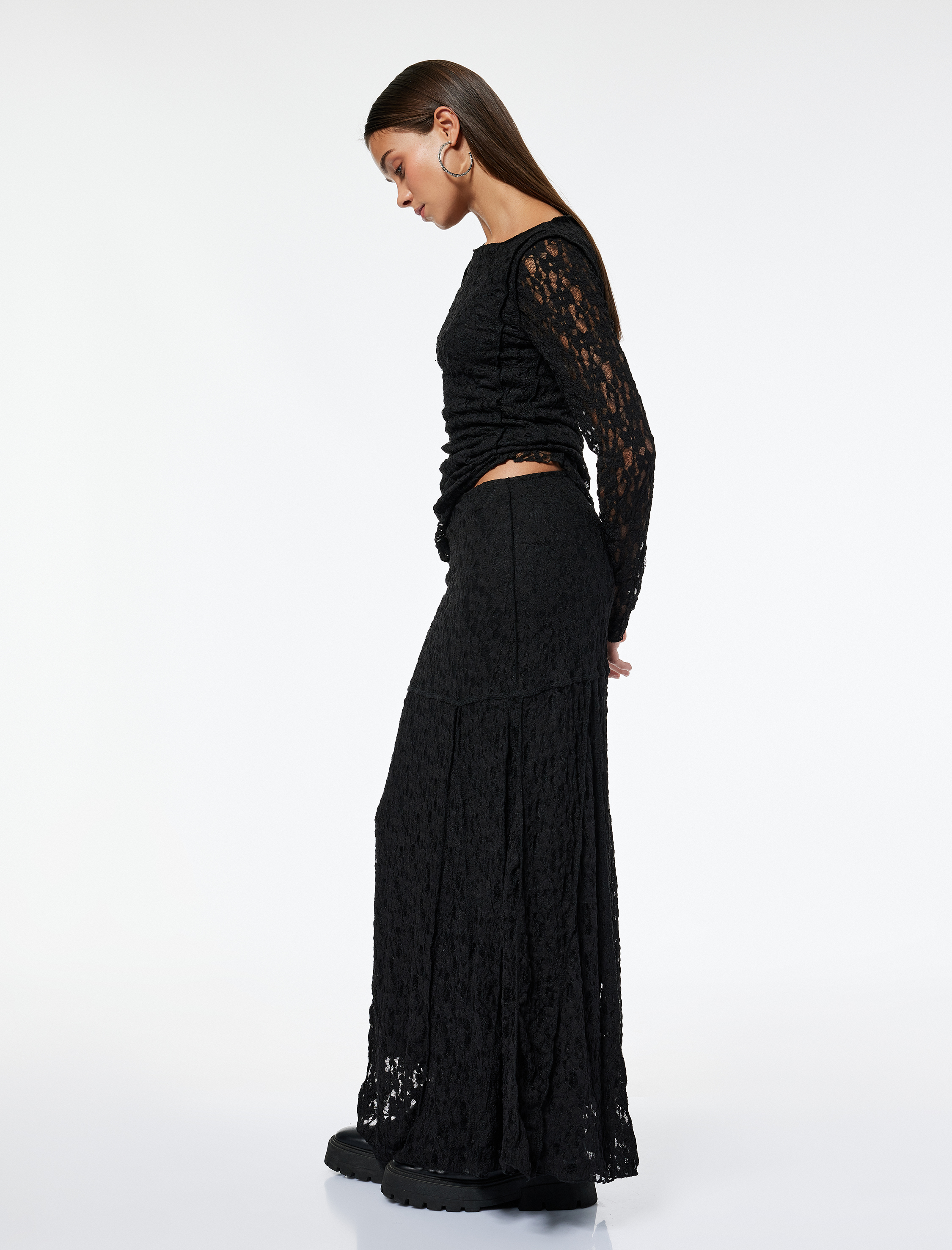 Slim Fit Dikiş Detaylı Midi Dantel Etek