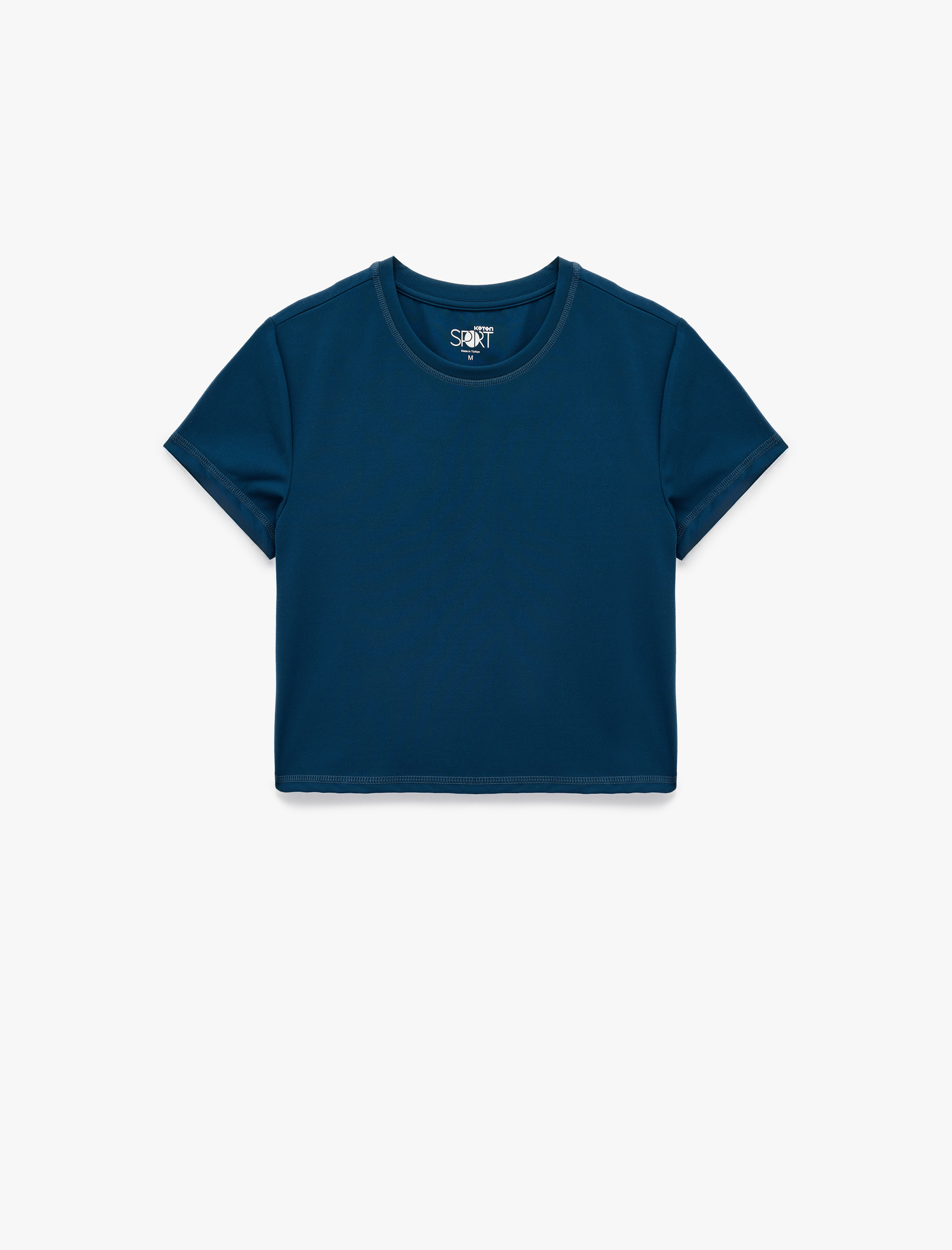 Slim Fit Kısa Kollu Bisiklet Yaka Crop Spor Tişört