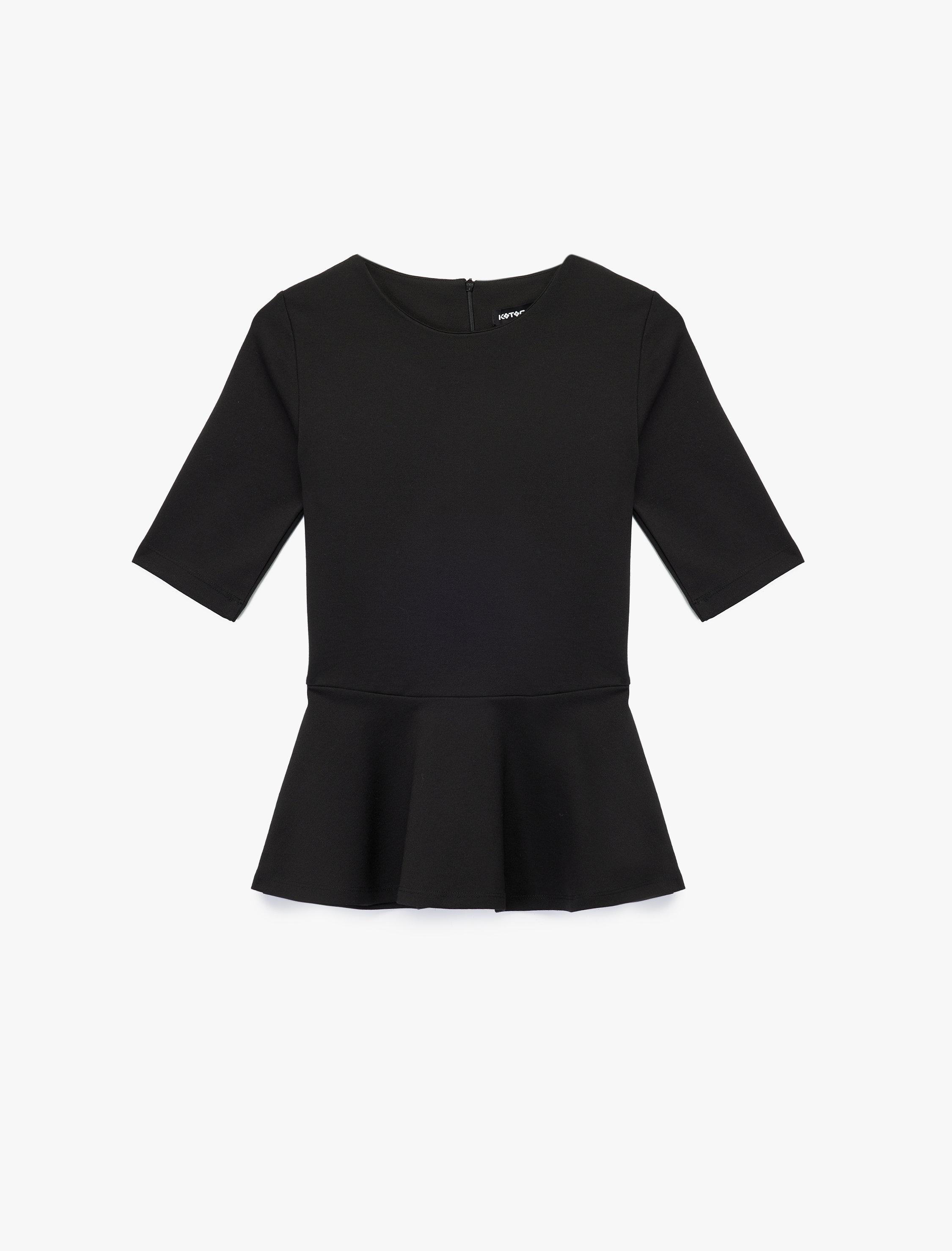 Slim Fit Kısa Kollu Bisiklet Yaka Peplum Bluz   Slim Fit Kısa Kollu Bisiklet Yaka Peplum Bluz   Slim Fit Kısa Kollu Bisiklet Yaka Peplum Bluz
