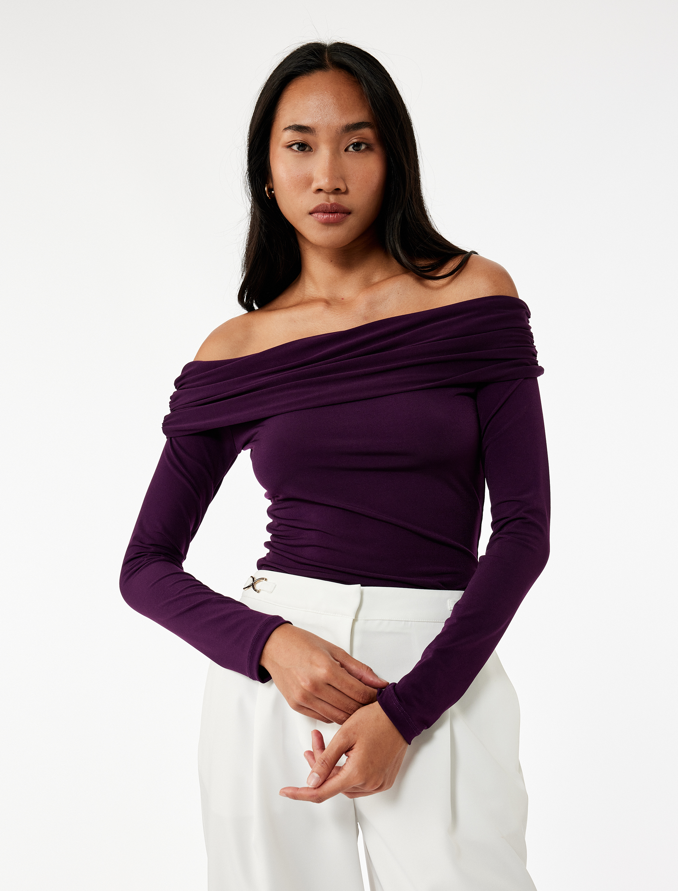 { "id": "8684758848620", "name": "Slim Fit Uzun Kollu Drapeli Omzu Açık Tişört", "taxonomy":["CITY FASHION","CITY FASHION","WOMEN","JERSEY","TSHIRT LS"], "currency": "TRY", "unit_price": 899.99 , "unit_sale_price": 899.99 , "url": "https://www.koton.com/slim-fit-uzun-kollu-drapeli-omzu-acik-tisort-mor-4085896-4/", "stock": 23, "color": "MOR", "size": "L", "combine": "", "product_image_url": "https://ktnimg2.mncdn.com/products/2025/08/25/3110364/77c55b64-0289-4ca3-bdb7-628c219f042f.jpg" }