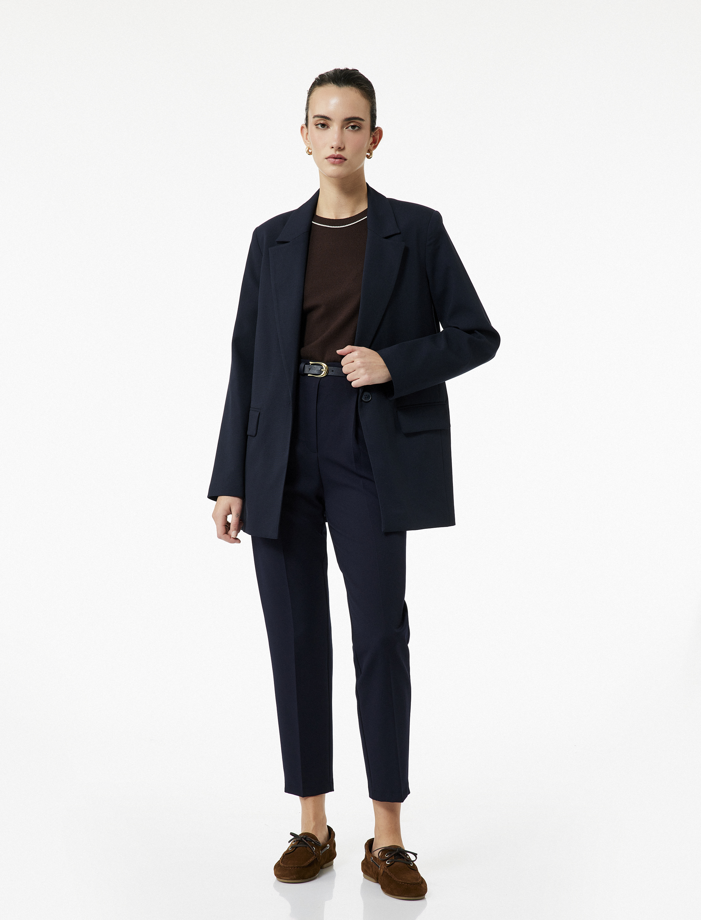 Slim Fit Yüksek Bel Kemerli Cigarette Kumaş Pantolon