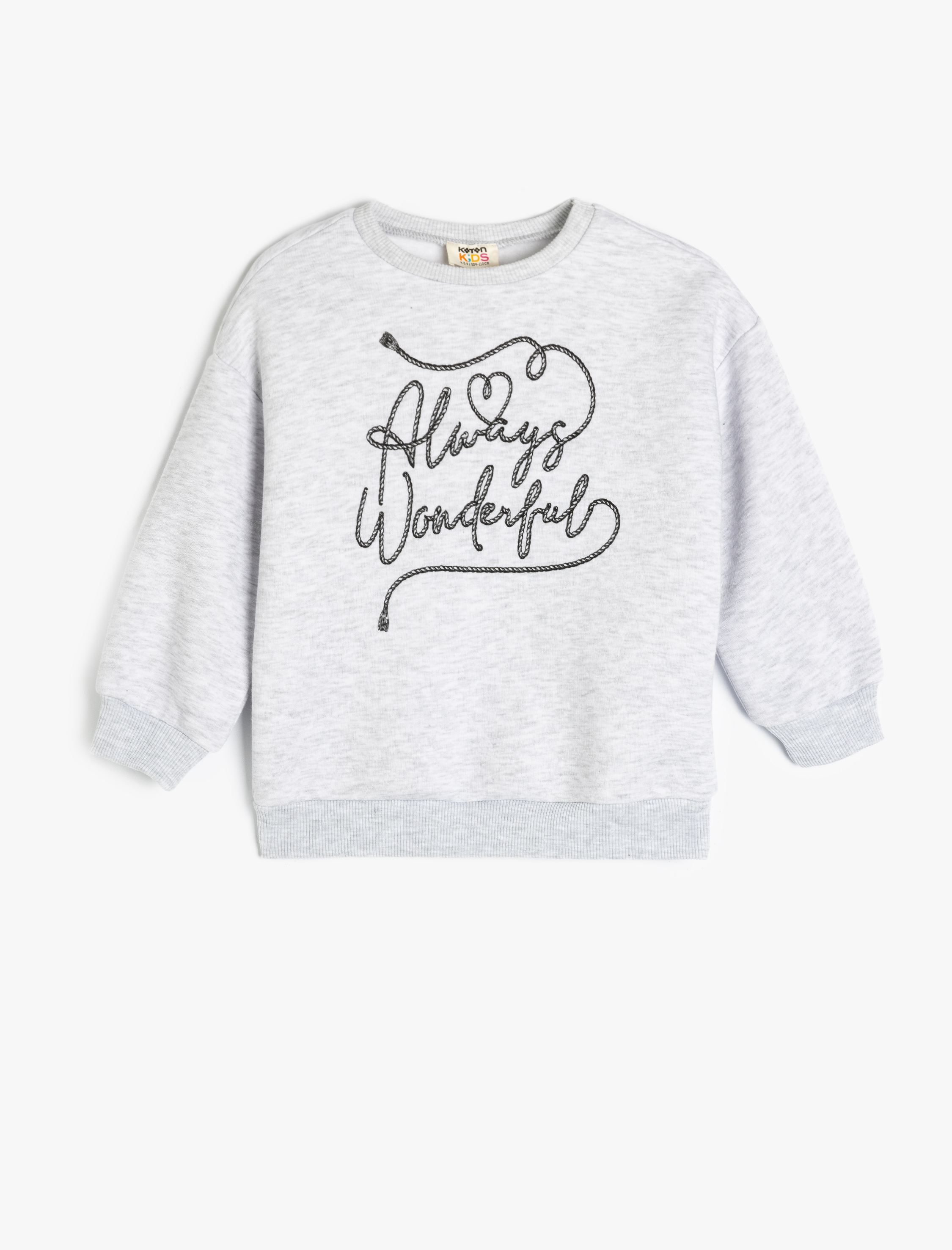 Kız Çocuk Slogan Baskılı Bisiklet Yaka Uzun Kollu Şardonlu Sweatshirt