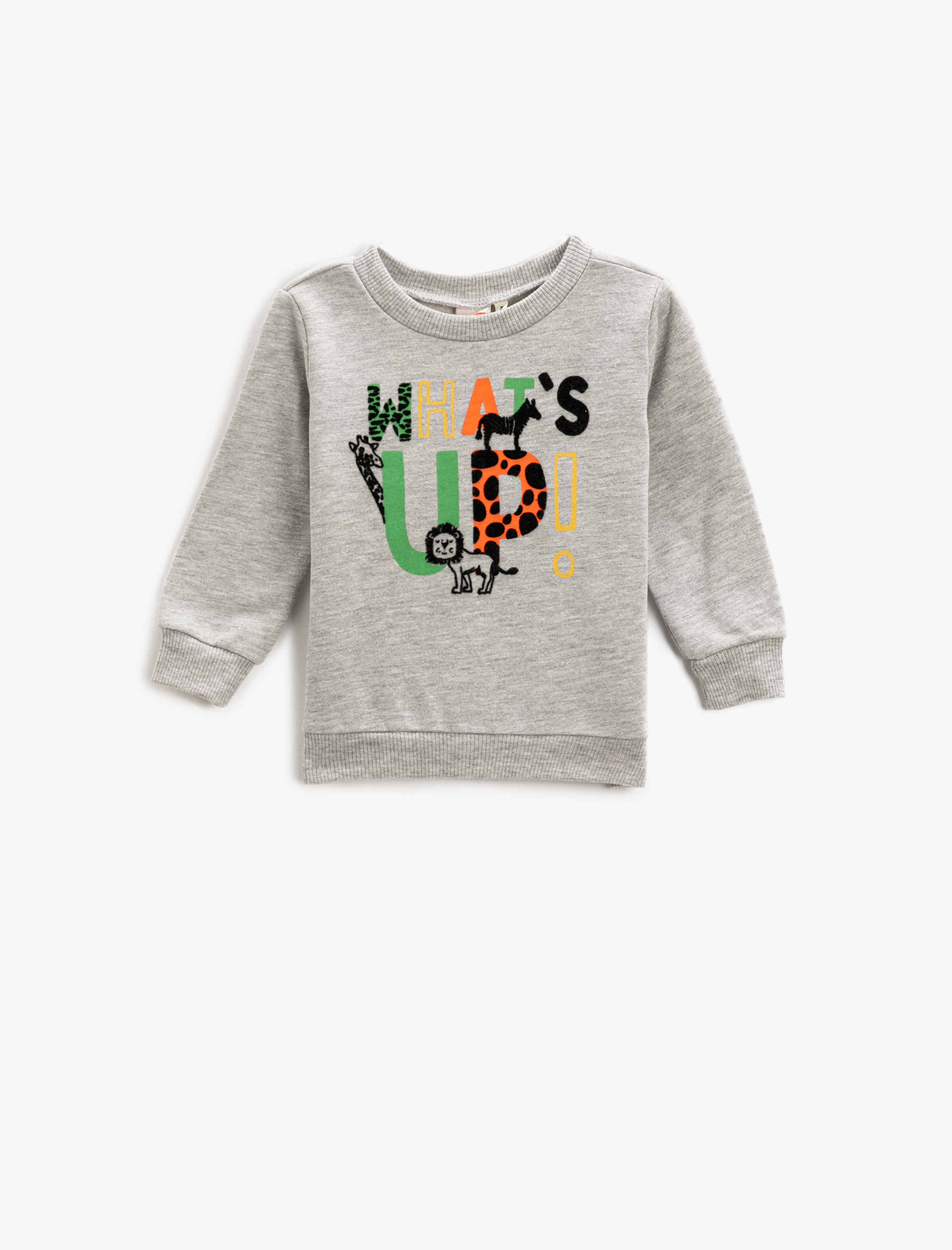 Erkek Bebek Slogan Baskılı Sweatshirt Uzun Kollu Bisiklet Yaka  Erkek Bebek Slogan Baskılı Sweatshirt Uzun Kollu Bisiklet Yaka