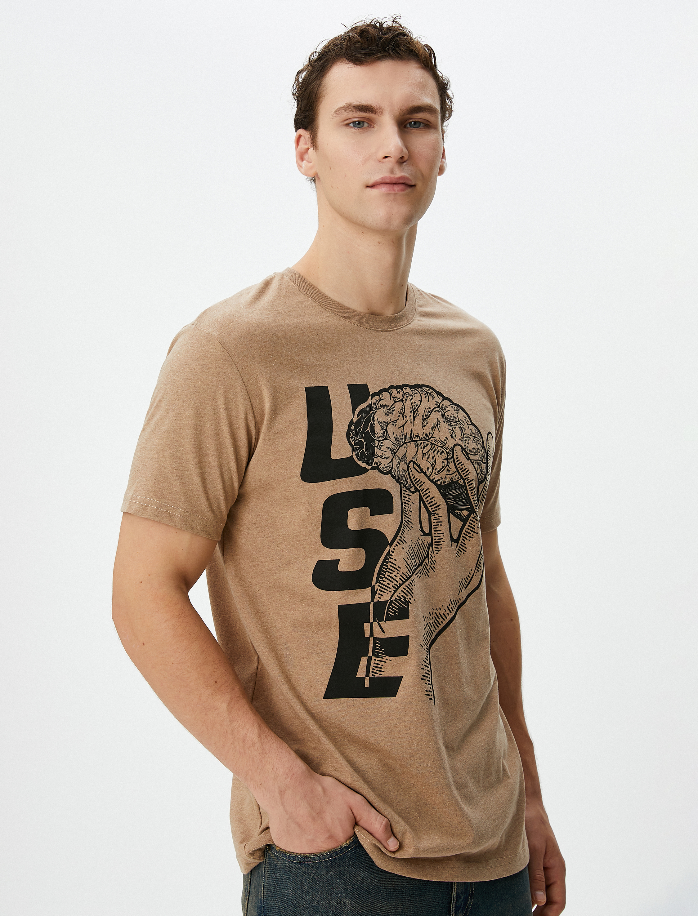 Slogan Baskılı Tişört Bisiklet Yaka Kısa Kollu