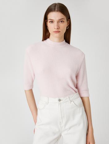 Ribanalı Triko Kazak Kısa Kollu Dik Yaka Sepete Ekle