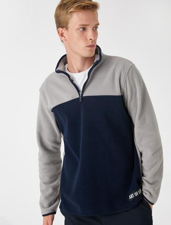 Polar Sweatshirt Renk Bloklu Dik Yaka Sepete Ekle