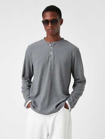 Yakası Düğmeli Uzun Kollu Tişört Sepete Ekle