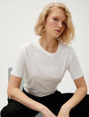 Yazı İşlemeli Tişört Bisiklet Yaka Sepete Ekle