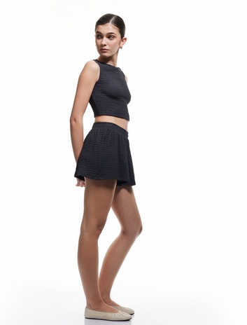 Beli Lastikli Bağcıklı Dokulu Mini Şort Sepete Ekle