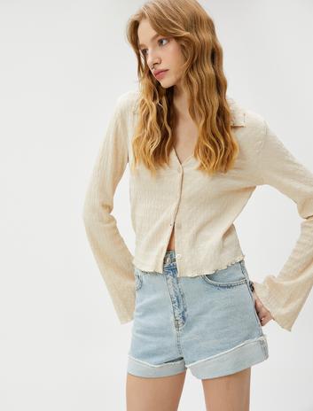 Uzun Kollu Tişört Gömlek Yaka Düğmeli Dokulu Bürümcük Sepete Ekle