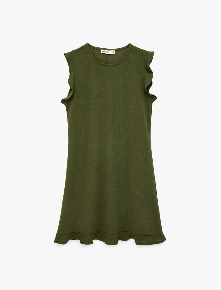 Krep Scuba Kumaş Kolsuz Bisiklet Yaka Fırfırlı Mini Elbise Sepete Ekle