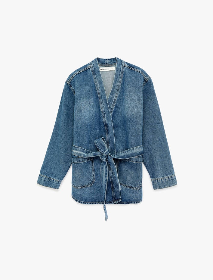 Regular Fit Cepli Uzun Kollu Kemerli Denim Ceket Sepete Ekle