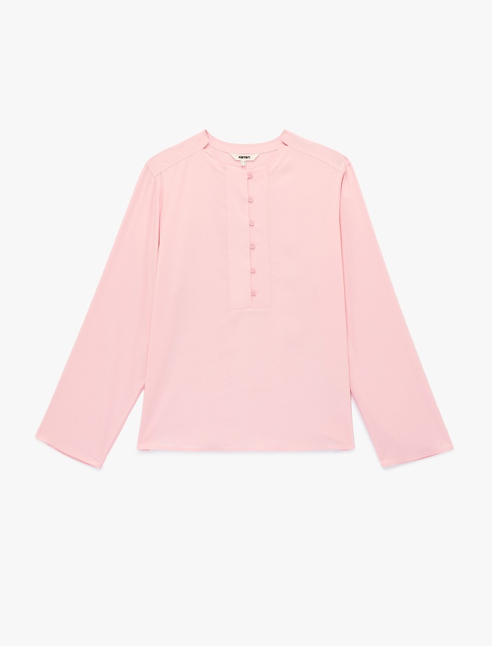 Bol Kalıp Uzun Kollu Bisiklet Yaka Yarım Düğme Detaylı Bluz Sepete Ekle