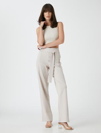 Düz Paça Pantolon Beli Kuşaklı Örme Sepete Ekle