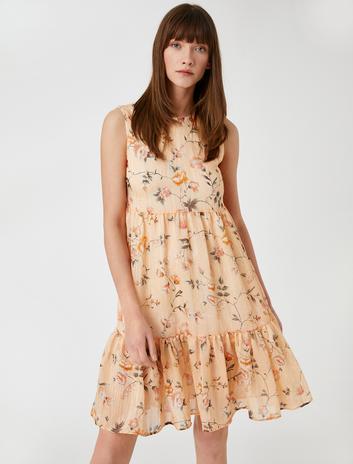 Kısa Çiçekli Elbise Kolsuz Yuvarlak Yaka Sepete Ekle
