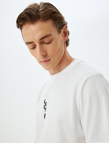 Baskılı Tişört Bisiklet Yaka Kısa Kollu Pamuklu