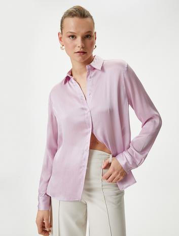 Saten Gömlek Dokulu Düğmeli Uzun Kollu